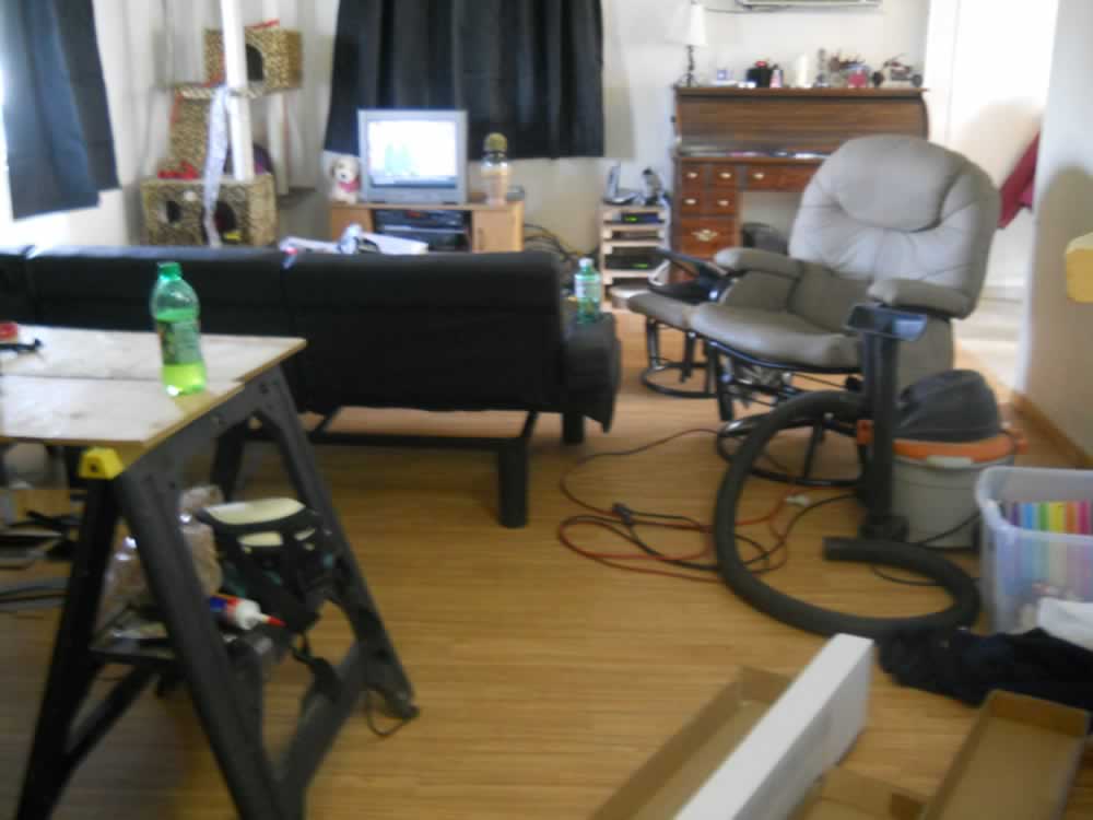 moved back in. I am still trimming up the hallway so the saw horses are still