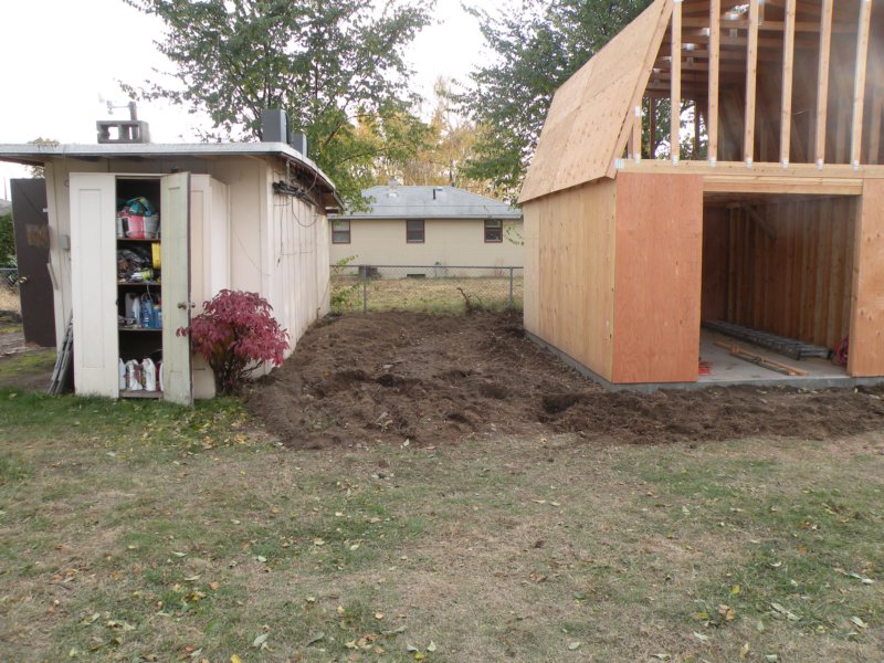 This is what it looked like before the skid steer. Note the level of the dirt between the shack and the new shed